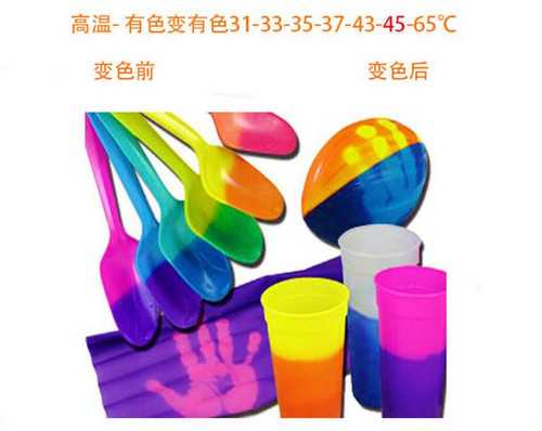 2、溫變粉可逆熱敏變色顏料是一種新穎的著色劑,它可以隨環境溫度的變化而迅速改變顏色,從而使被著色物體具有動態變化的色彩效果。